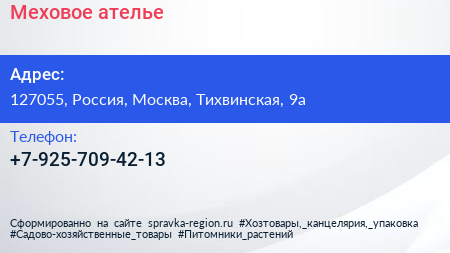 Меховое ателье по адресу 127055, Россия, Москва, Тихвинская, 9а в дальнейшем Организация, размещена в следующих категориях: