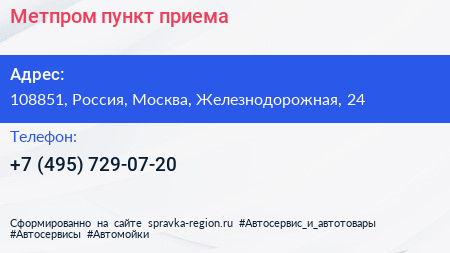 Метпром, пункт приема по адресу 108851, Россия, Москва, Железнодорожная, 24 в дальнейшем Организация, размещена в следующих категориях: