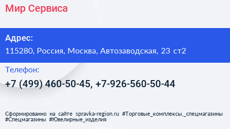 Мир-Сервиса по адресу 115280, Россия, Москва, Автозаводская, 23 ст2 в дальнейшем Организация, размещена в следующих категориях: