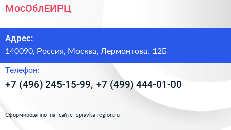 МосОблЕИРЦ по адресу 140090, Россия, Москва, Лермонтова, 12Б в дальнейшем Организация, размещена в следующих категориях: