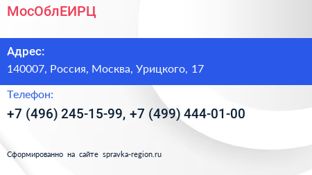 МосОблЕИРЦ по адресу 140007, Россия, Москва, Урицкого, 17 в дальнейшем Организация, размещена в следующих категориях: