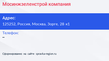 Мосинжзеленстрой, компания по адресу 125252, Россия, Москва, Зорге, 28 к1 в дальнейшем Организация, размещена в следующих категориях: