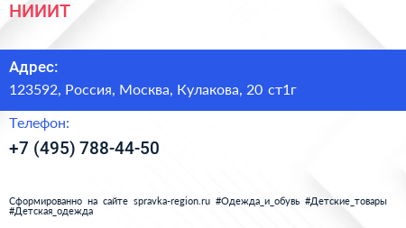 НИИИТ по адресу 123592, Россия, Москва, Кулакова, 20 ст1г в дальнейшем Организация, размещена в следующих категориях: