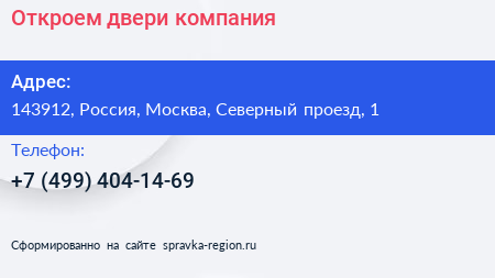 Откроем двери, компания по адресу 143912, Россия, Москва, Северный проезд, 1 в дальнейшем Организация, размещена в следующих категориях: