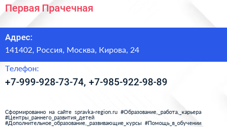 Первая Прачечная по адресу 141402, Россия, Москва, Кирова, 24 в дальнейшем Организация, размещена в следующих категориях: