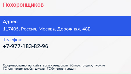 Похоронщиков по адресу 117405, Россия, Москва, Дорожная, 48Б в дальнейшем Организация, размещена в следующих категориях: