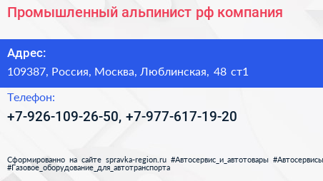 Промышленный альпинист.рф, компания по адресу 109387, Россия, Москва, Люблинская, 48 ст1 в дальнейшем Организация, размещена в следующих категориях: