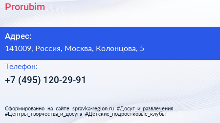 Prorubim по адресу 141009, Россия, Москва, Колонцова, 5 в дальнейшем Организация, размещена в следующих категориях: