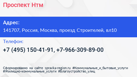 Проспект-Нтм по адресу 141707, Россия, Москва, проезд Строителей, вл10 в дальнейшем Организация, размещена в следующих категориях:
