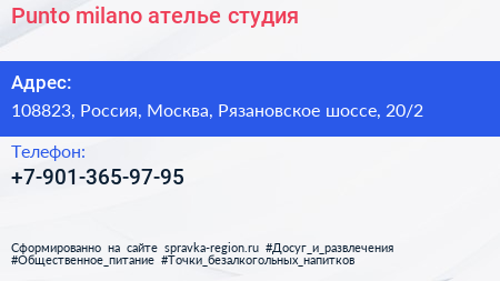 Punto milano, ателье-студия по адресу 108823, Россия, Москва, Рязановское шоссе, 20/2 в дальнейшем Организация, размещена в следующих категориях: