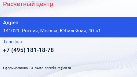 Расчетный центр по адресу 141021, Россия, Москва, Юбилейная, 40 к1 в дальнейшем Организация, размещена в следующих категориях: