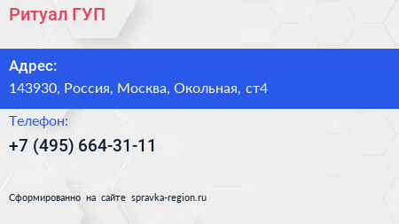 Ритуал ГУП по адресу 143930, Россия, Москва, Окольная, ст4 в дальнейшем Организация, размещена в следующих категориях: