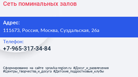 Сеть поминальных залов по адресу 111673, Россия, Москва, Суздальская, 26а в дальнейшем Организация, размещена в следующих категориях: