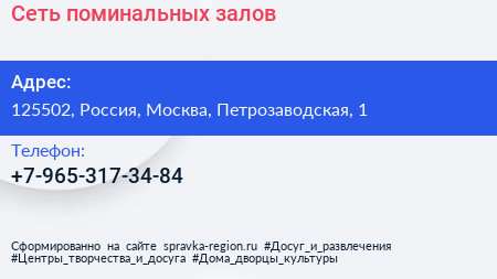 Сеть поминальных залов по адресу 125502, Россия, Москва, Петрозаводская, 1 в дальнейшем Организация, размещена в следующих категориях: