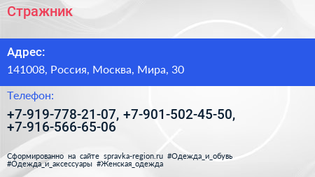 Стражник по адресу 141008, Россия, Москва, Мира, 30 в дальнейшем Организация, размещена в следующих категориях: