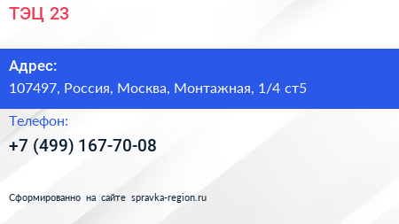 ТЭЦ-23 по адресу 107497, Россия, Москва, Монтажная, 1/4 ст5 в дальнейшем Организация, размещена в следующих категориях: