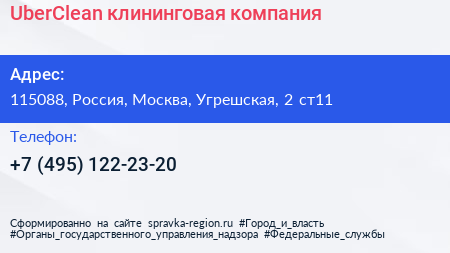 UberClean, клининговая компания по адресу 115088, Россия, Москва, Угрешская, 2 ст11 в дальнейшем Организация, размещена в следующих категориях: