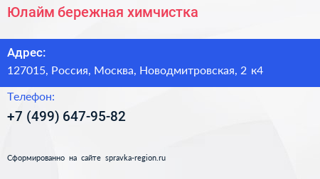 Юлайм, бережная химчистка по адресу 127015, Россия, Москва, Новодмитровская, 2 к4 в дальнейшем Организация, размещена в следующих категориях: