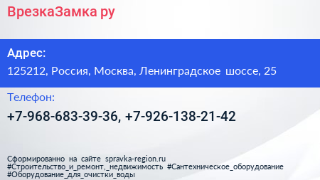 ВрезкаЗамка.ру по адресу 125212, Россия, Москва, Ленинградское шоссе, 25 в дальнейшем Организация, размещена в следующих категориях: