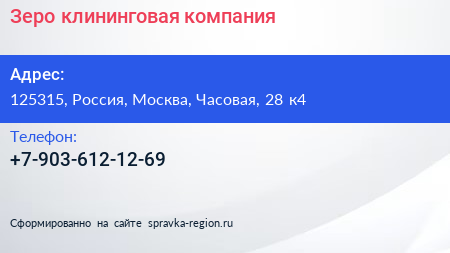 Зеро, клининговая компания по адресу 125315, Россия, Москва, Часовая, 28 к4 в дальнейшем Организация, размещена в следующих категориях: