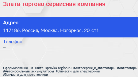 Злата, торгово-сервисная компания по адресу 117186, Россия, Москва, Нагорная, 20 ст1 в дальнейшем Организация, размещена в следующих категориях: