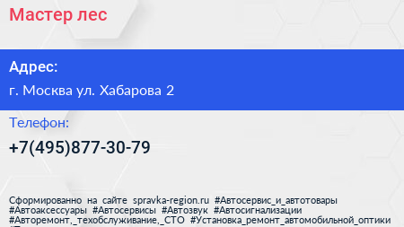 Мастер лес по адресу г. Москва ул. Хабарова 2 в дальнейшем Организация, размещена в следующих категориях:
