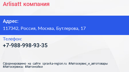 Arlisatt, компания по адресу 117342, Россия, Москва, Бутлерова, 17 в дальнейшем Организация, размещена в следующих категориях: