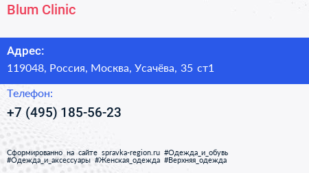 Blum Clinic по адресу 119048, Россия, Москва, Усачёва, 35 ст1 в дальнейшем Организация, размещена в следующих категориях: