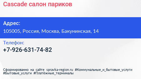 Cascade, салон париков по адресу 105005, Россия, Москва, Бакунинская, 14 в дальнейшем Организация, размещена в следующих категориях:
