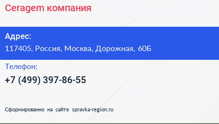 Ceragem, компания по адресу 117405, Россия, Москва, Дорожная, 60Б в дальнейшем Организация, размещена в следующих категориях: