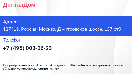 ДенталДом по адресу 127411, Россия, Москва, Дмитровское шоссе, 157 ст9 в дальнейшем Организация, размещена в следующих категориях: