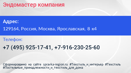 Эндомастер, компания по адресу 129164, Россия, Москва, Ярославская, 8 к4 в дальнейшем Организация, размещена в следующих категориях: