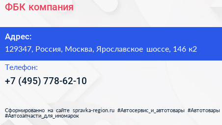 ФБК, компания по адресу 129347, Россия, Москва, Ярославское шоссе, 146 к2 в дальнейшем Организация, размещена в следующих категориях: