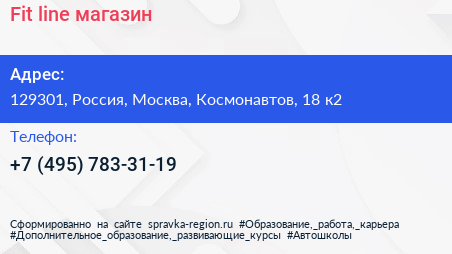 Fit line, магазин по адресу 129301, Россия, Москва, Космонавтов, 18 к2 в дальнейшем Организация, размещена в следующих категориях: