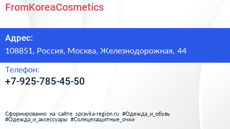 FromKoreaCosmetics по адресу 108851, Россия, Москва, Железнодорожная, 44 в дальнейшем Организация, размещена в следующих категориях: