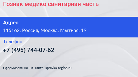 Гознак, медико-санитарная часть по адресу 115162, Россия, Москва, Мытная, 19 в дальнейшем Организация, размещена в следующих категориях: