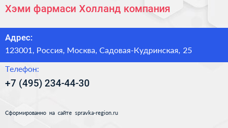 Хэми фармаси Холланд, компания по адресу 123001, Россия, Москва, Садовая-Кудринская, 25 в дальнейшем Организация, размещена в следующих категориях: