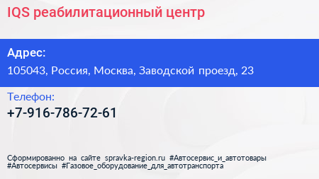 IQS, реабилитационный центр по адресу 105043, Россия, Москва, Заводской проезд, 23 в дальнейшем Организация, размещена в следующих категориях: