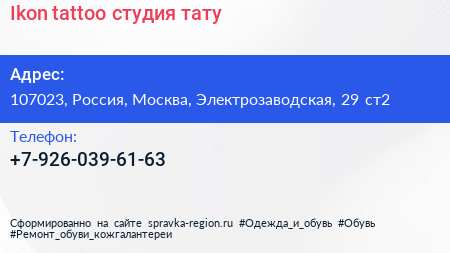 Ikon tattoo, студия тату по адресу 107023, Россия, Москва, Электрозаводская, 29 ст2 в дальнейшем Организация, размещена в следующих категориях: