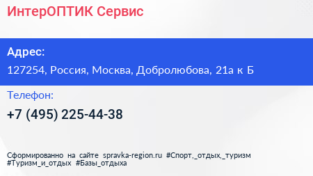 ИнтерОПТИК-Сервис по адресу 127254, Россия, Москва, Добролюбова, 21а к Б в дальнейшем Организация, размещена в следующих категориях: