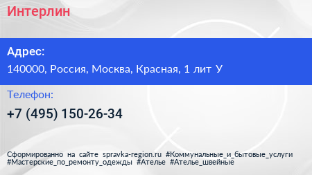 Интерлин по адресу 140000, Россия, Москва, Красная, 1 лит У в дальнейшем Организация, размещена в следующих категориях: