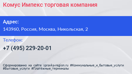 Комус Импекс, торговая компания по адресу 143960, Россия, Москва, Никольская, 2 в дальнейшем Организация, размещена в следующих категориях: