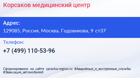 Корсаков, медицинский центр по адресу 129085, Россия, Москва, Годовикова, 9 ст37 в дальнейшем Организация, размещена в следующих категориях: