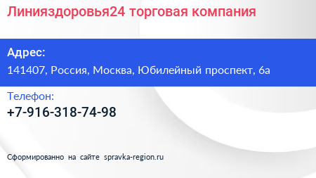 Линияздоровья24, торговая компания по адресу 141407, Россия, Москва, Юбилейный проспект, 6а в дальнейшем Организация, размещена в следующих категориях: