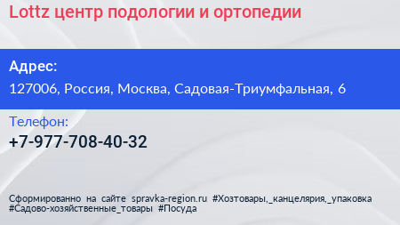 Lottz, центр подологии и ортопедии по адресу 127006, Россия, Москва, Садовая-Триумфальная, 6 в дальнейшем Организация, размещена в следующих категориях: