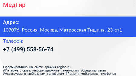 МедГир по адресу 107076, Россия, Москва, Матросская Тишина, 23 ст1 в дальнейшем Организация, размещена в следующих категориях: