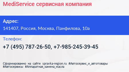 MediService, сервисная компания по адресу 141407, Россия, Москва, Панфилова, 10а в дальнейшем Организация, размещена в следующих категориях: