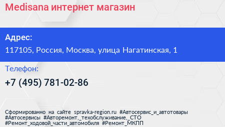Medisana, интернет-магазин по адресу 117105, Россия, Москва, улица Нагатинская, 1 в дальнейшем Организация, размещена в следующих категориях: