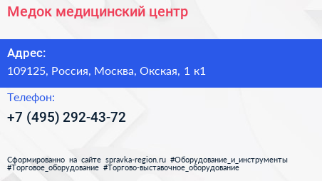 Медок, медицинский центр по адресу 109125, Россия, Москва, Окская, 1 к1 в дальнейшем Организация, размещена в следующих категориях: