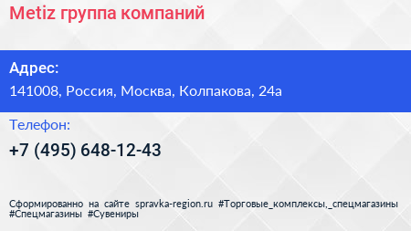 Metiz, группа компаний по адресу 141008, Россия, Москва, Колпакова, 24а в дальнейшем Организация, размещена в следующих категориях: